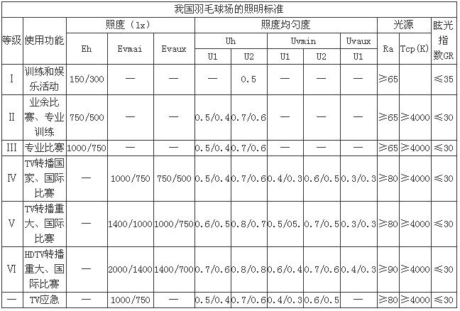 2、羽毛球馆灯具应有档光防护罩,以防眩光;