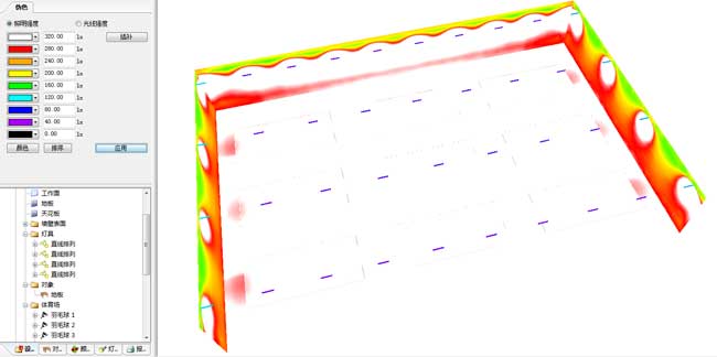 1、以顶棚上的灯具(LED室内球场灯)作一般照明,再从球网两侧较高的位置增加辅助透光照明;